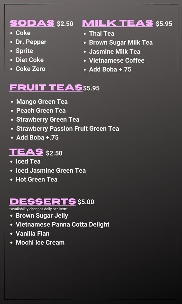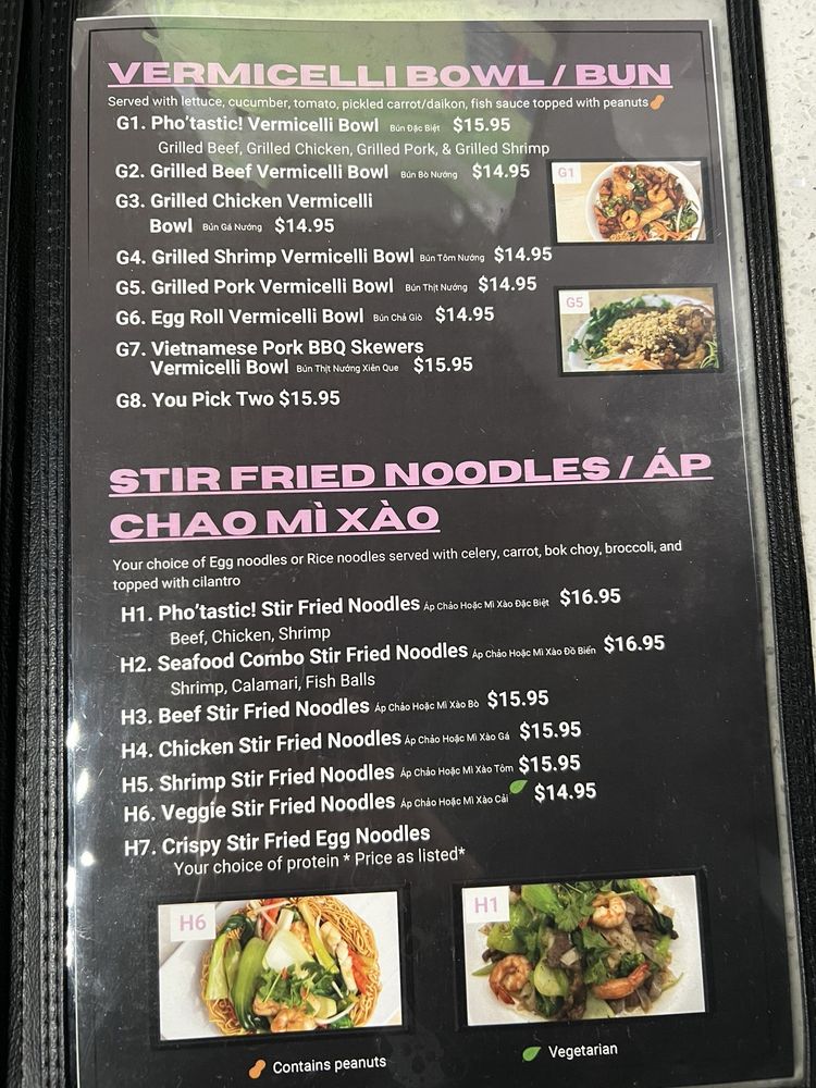 Pho'Tastic! Menu
